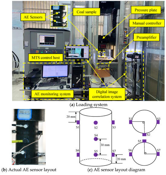 In essence, crack emergence, development, and propagation in coal rock masses are processes of cumulative and progressive damage. Therefore, AE signals during the damage and failure processes were collected to establish reasonable and effective evaluation indicators for characterizing the damage state of coal rock masses.