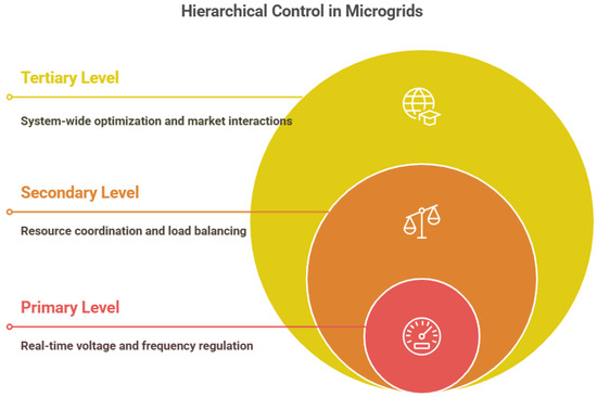 - Kabalci, E. Hierarchical control in microgrid. In Microgrid Architectures, Control and Protection Methods; Springer: Berlin/Heidelberg, Germany, 2020; pp. 381–401. [Google Scholar]