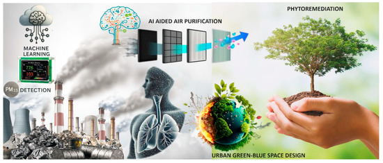 This review synthesizes recent advances from 2021 to 2025 in PM2.5 monitoring through the integration of ML and sustainable mitigation strategies. The central aim is to systematically consolidate the fragmented yet rapidly evolving bodies of research on ML-enhanced PM2.5 sensing, encompassing sensor calibration, forecasting, and source attribution, alongside sustainable mitigation interventions. By critically examining the interface between these traditionally disparate domains, the review elucidates their potential for synergistic integration. It further delineates a comprehensive conceptual framework illustrating that the convergence of advanced ML techniques with ecologically grounded practices can enable holistic and adaptive air quality management (Figure 1).