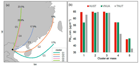 Air-mass trajectory analysis includes (a) a spatial map of clustered trajectories and (b) the partial influence of these trajectories on PM2.5 concentrations. Reprinted from [78].