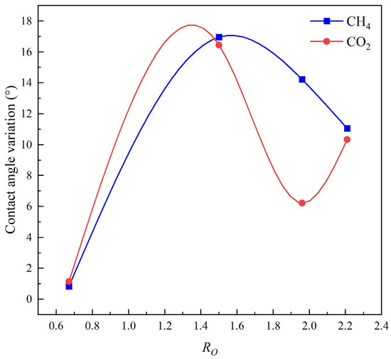 4.2. Analysis of Wettability Differences Caused by Different Gases