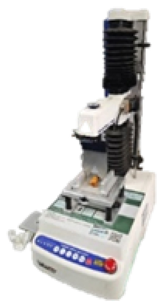 Shear modulus measurements were conducted using the TA.XT Plus texture analyzer from SMS (Figure 2), equipped with an HDP/WBV 60° V-shaped cutter for shear testing. The experimental data for the three materials are presented in Figure 3. Based on the data in Figure 3, the average shear moduli were calculated as follows: 1.19 MPa for diced chicken, 13.37 MPa for peanuts, and 7.88 MPa for diced scallions.