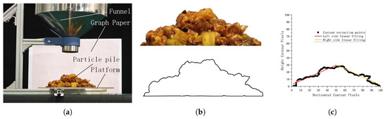 In the EDEM simulation experiments, the following fitted equations for diced chicken, peanuts, and diced scallions were, respectively, obtained with the corresponding fitting curves presented in Figure 6c:
