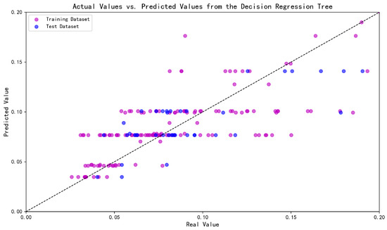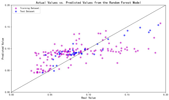 As evident from Figure 12, Figure 13 and Figure 14 and Table 4, among the standard RF, standard DT, and XGBoost models, XGBoost exhibited the best prediction performance, which inherently stems from its flexible nonlinear modeling capability and targeted optimization strategies. Compared to the standalone XGBoost model, the hyperparameter optimization component of the MFO-XGBoost method significantly improved the prediction performance.