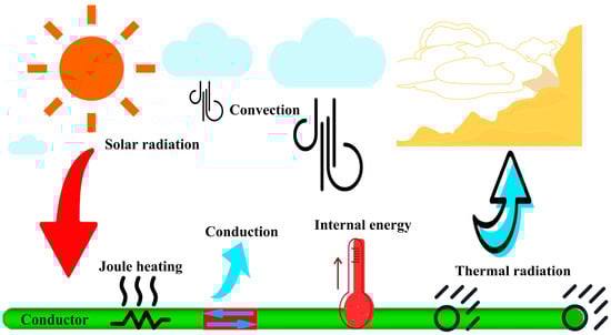 - Yang, X.; Zhu, S.; Qin, S.; Zhan, X.; Zhu, L. Analysis of temperature rise characteristics and current carrying capacity of overhead conductor. In Proceedings of the 2022 IEEE Conference on Electrical Insulation and Dielectric Phenomena (CEIDP), Denver, CO, USA, 30 October–2 November 2022; IEEE: Piscataway, NJ, USA, 2022; pp. 123–126. [Google Scholar]