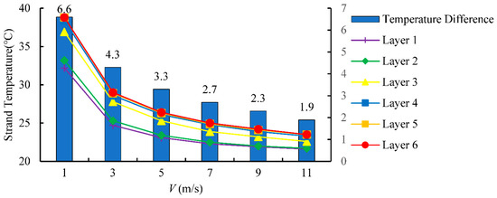 4.2. Effect of Wind Speed on Radial Temperature of Conductor
