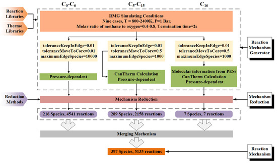 - Gao, C.W.; Allen, J.W.; Green, W.H.; West, R.H. Reaction Mechanism Generator: Automatic construction of chemical kinetic mechanisms. Comput. Phys. Commun. 2016, 203, 212–225. [Google Scholar] [CrossRef]
