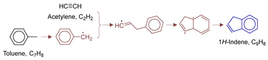 - Kislov, V.V.; Mebel, A.M. Ab initio G3-type/statistical theory study of the formation of indene in combustion flames. I. Pathways involving benzene and phenyl radical. J. Phys. Chem. A 2007, 111, 3922–3931. [Google Scholar] [CrossRef]