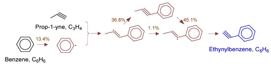 - Senosiain, J.P.; Klippenstein, S.J.; Miller, J.A. The reaction of acetylene with hydroxyl radicals. J. Phys. Chem. A 2005, 109, 6045. [Google Scholar] [CrossRef]