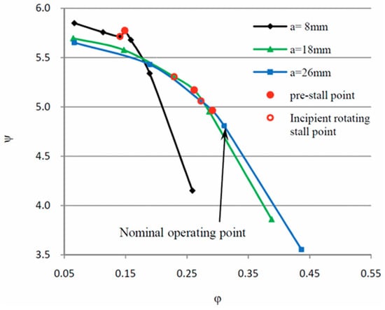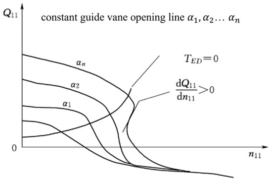 The S-shaped characteristic has always been one of the challenges for the stable operation of traditional pumped storage units. Previous studies on flow field optimization of pump-turbines can be categorized into two dimensions: optimization methods and runner design theories. The most prominent optimization approach involves alleviating the S-shaped characteristics of pump-turbines via misaligned guide vanes (MGVs) [57]. Xiao et al. [58] and Jin et al. [59] observed that the application of misaligned guide vanes can enhance the S-curve characteristics of pump-turbines, as illustrated in Figure 6.