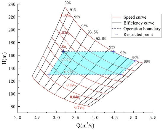 Owing to the unstable nature of the complex S-shaped behavior, a great many studies have centered on enhancing the efficiency of pump-turbines within the S-region. Sivakumar et al. [67,68] proposed using variable-speed technology to enhance power station performance, demonstrating that this approach can significantly improve operational efficiency in both turbine and pump modes while expanding the stable operating range of pump-turbines, as shown in Figure 8. Ghoneim [69] achieved smooth flow control in the S-characteristic region by optimizing the matching relationship between photovoltaic panel size/angle and pump rotational speed. Lara et al. [70] utilized an AC–DC–AC direct-drive power converter in a wind-powered pumping system, observing that when the converter efficiency lies between 70% and 95%, its power factor optimization strategy can effectively dampen torque fluctuations in the S-region.