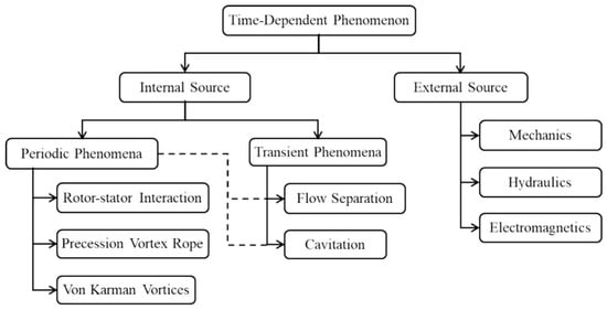 Various time-dependent phenomena at different operating conditions of a pump-turbine [113].