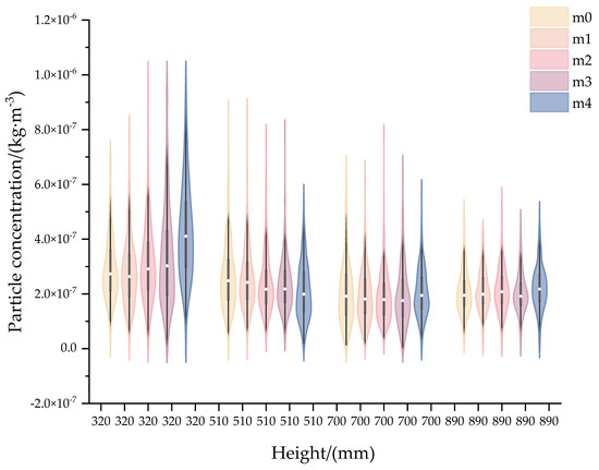 Violin plots of aerosol concentration based on different aerosol mixing chamber heights.