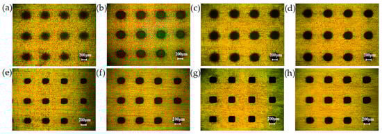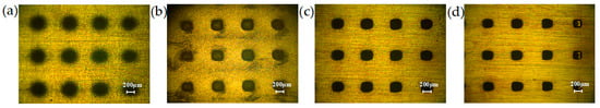- Liu, Z.; Lian, Z.; Yang, J.; Xu, J.K.; Tian, Y.L.; Yu, H.D. High-efficient and scalable fabrication of robust superhydrophobic microarrays through maskless electrochemical machining. Colloids Surf. A Physicochem. Eng. Asp. 2024, 681, 132700. [Google Scholar] [CrossRef]