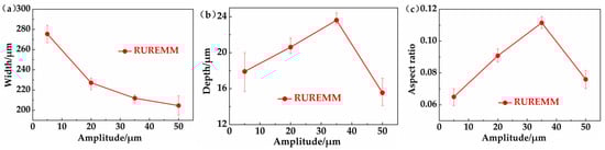 | Items | Amplitude [μm] | Short Circuits | Width [μm] | Depth [μm] | Aspect Ratio |