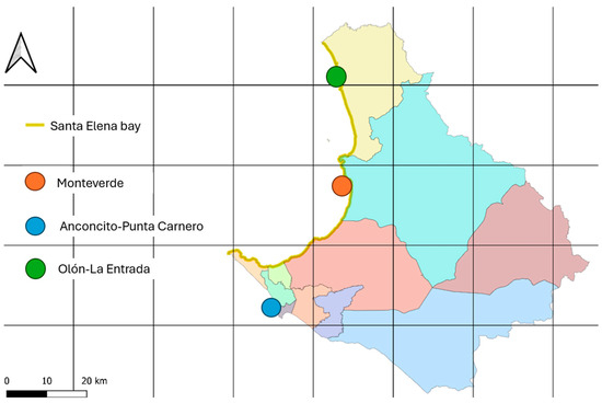 Identification of potential sites for wave-based electricity generation in Santa Elena Province.