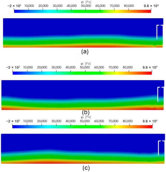 Static pressure contours (a) at 40 s, (b) at 80 s, and (c) at 120 s.