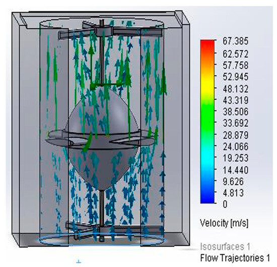 In the second stage of the analysis, emphasis is placed on the use of Computational Fluid Dynamics (CFD) software. The data obtained from the first stage, using OpenFOAM, specifically velocity, pressure, and mass flow rate, serve as time-dependent input conditions for this phase. These parameters vary according to wave period and are imported into the CFD tool to assess airflow dynamics. With the theoretical framework established, the design of the Wells turbine and the corresponding flow redirectors was developed to evaluate the interaction of air with the turbine blade profiles.