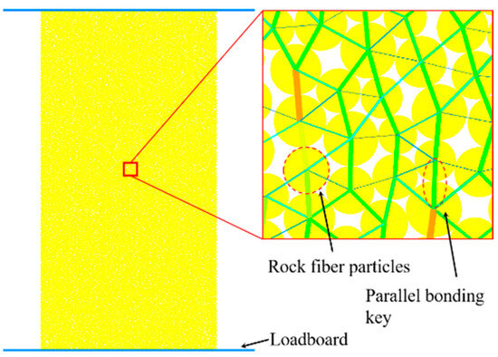 - Removing lateral walls after contact model implementation while retaining upper and lower walls as uniaxial compression loading plates. The numerical model configuration is shown in Figure 12.