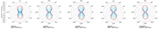 Distribution of contact direction quantity under different stresses.