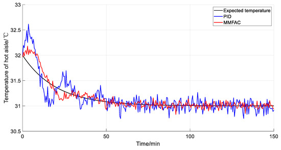 Comparison of temperature of hot aisle between PID and MMFAC.