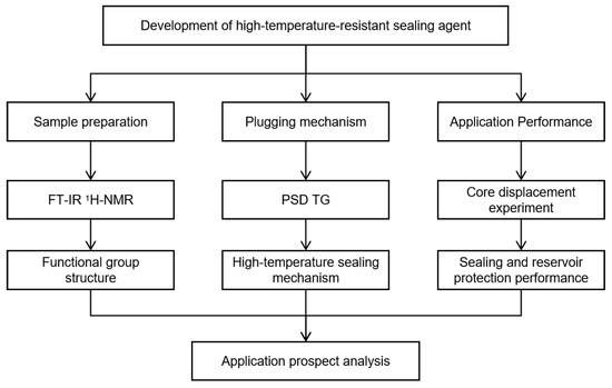 A significant amount of work on the research and development of drilling fluids has been carried out by relevant scholars. In the early stages of drilling fluid research, traditional minerals and inorganic compounds were used as drilling fluid additives [4]. However, as geological conditions deteriorated, these materials could no longer solve drilling problems. Consequently, plugging-type fluid-loss additives came into the focus of researchers. High-temperature plugging fluid-loss additives with good field application performance can be mainly classified into two categories [5,6]. One category comprises water-soluble products such as SMP-1, SP, SCSP, and SLSP [7]. The other category consists of products that are partially both hydrophilic and lipophilic, like sulfonated asphalt and modified asphalt [8]. Both types of fluid-loss additives have certain functions in preventing wellbore collapse and protecting oil reservoirs during practical applications. Nevertheless, they also have some shortcomings. For example, their excessive solubility in water leads to complete dissolution at high temperatures, which reduces the plugging effect [9]. Kong Yong et al. [10] summarized and analyzed low-fluorescence anti-collapse asphalt and low-fluorescence special-effect plugging, anti-collapse, and fluid-loss reducing agents. Products such as LF-TEX-1 and FSL-1 can effectively reduce fluid loss by increasing the sulfonation degree of petroleum asphalt and also have the ability to prevent misjudgment or false judgment of oil reservoirs. Tang Meng et al. [11] developed a plugging-type PAAM as a fluid-loss additive, which showed good fluid-loss reduction performance. Wei Jun et al. [12] developed a modified corn starch fluid-loss additive with a fluid-loss reduction rate of about 45%. In addition, foreign scholars have also developed modified cellulose-based fluid-loss additives [13], which exhibit certain fluid-loss reduction effects.
