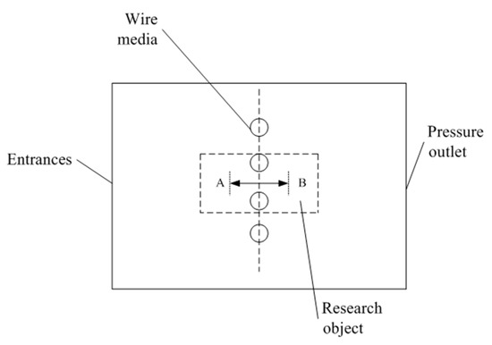 The calculation area and boundary conditions of the double-wire model.