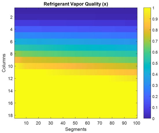 Variation of refrigerant vapor quality in each segment along the tube columns.