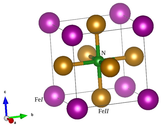 - Frazer, B.C. Magnetic structure of Fe4N. Phys. Rev. 1958, 112, 751. [Google Scholar] [CrossRef]