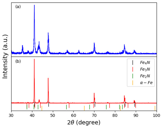 - Zhang, C.; Liu, X.; Li, M.; Liu, C.; Li, H.; Meng, X.; Mehmood Ur Rehman, K. Preparation and soft magnetic properties of γ′-Fe4N particles. J. Mater. Sci. 2017, 29, 1254–1257. [Google Scholar] [CrossRef]