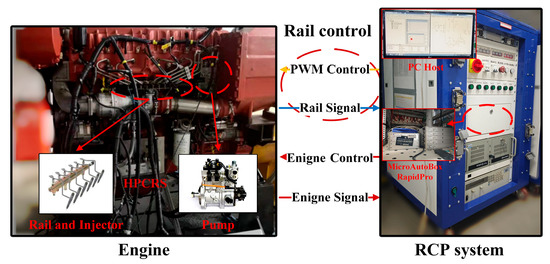 The rapid control prototyping (RCP) system, which functions as the core hardware platform, consists of two primary modules: the MicroAutoBox and the RapidPro. The MicroAutoBox handles sensor data acquisition and executes control algorithms, operating at a sampling interval of 1 ms. In parallel, the RapidPro facilitates the generation of control signals required for engine management and common rail actuation.