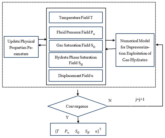 The Shenhu sea area, with a unique geological structure and suitable temperature–pressure conditions, has become a key region for the exploration and development of natural gas hydrates (NGHs). NGH exploitation is of great strategic significance for alleviating the energy crisis [1,2,3]. In the past decade, two vertical well depressurization test production operations have been completed in the Shenhu sea area, achieving stable gas production from argillaceous silty hydrates for the first time. Here, argillaceous silty hydrates refer to natural gas hydrates occurring in argillaceous silty sandstone reservoirs. The reservoir rocks are mainly composed of silt (with a particle size of 0.0039–0.0625 mm) and clay (with a particle size of <0.0039 mm), and the combined proportion of the two usually exceeds 70%. However, the low permeability and poor pore water fluidity lead to rapid productivity decline and short stable production periods, seriously restricting the commercial exploitation process [4,5,6]. Moreover, the interaction of the coupling mechanisms of hydrate phase change, fluid seepage, and formation deformation is complex, resulting in an unclear productivity change rate under depressurization exploitation [7,8,9,10]. Therefore, systematically analyzing the reservoir pressure, reservoir temperature, physical property parameters, and productivity change law in the numerical simulation of vertical well depressurization exploitation, and analyzing the internal mechanism of productivity change, is of crucial significance for optimizing the exploitation process and improving the resource utilization rate in the hydrate exploitation in the Shenhu Area.