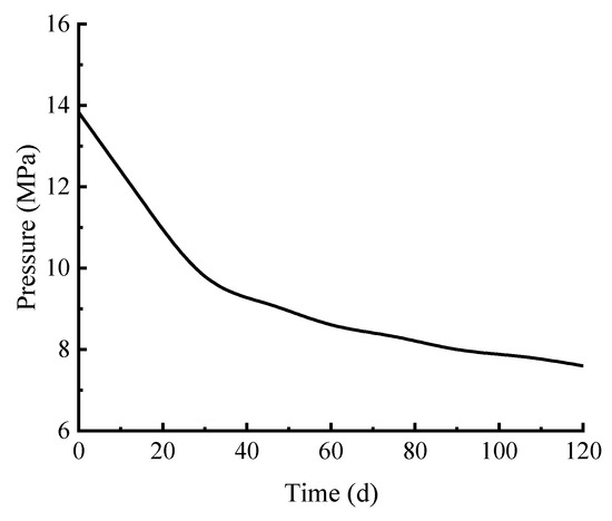 The change in reservoir pressure during the depressurization production of hydrate reservoirs in vertical wells in Shenhu sea area is shown in Figure 8.