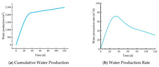 Curves of water production rate and cumulative water production with time during depressurization production.