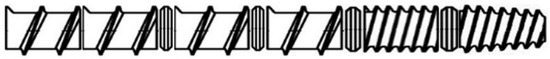 - Screw element 6: single-flight, full-pitch screw;