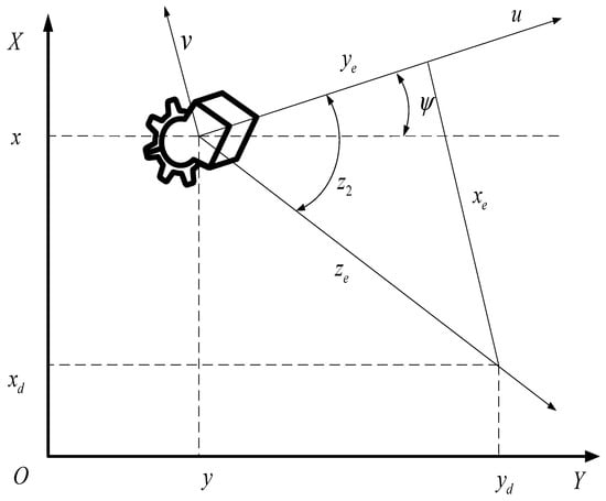 Assumption 2. The external interferences , , and acting on the under-driven ship are time-varying, and satisfy , , and , where , , and represent the upper bounds of the corresponding external interferences, which are unknown.