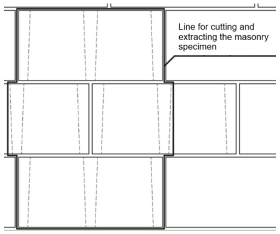 Cutting schematics for the removal of the masonry specimen from an already constructed wall. Adapted by the authors from NBR 16868-3 [18].