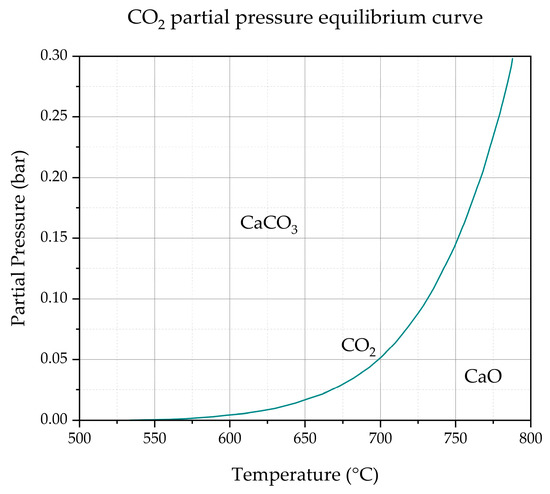 CO2 partial pressure in equilibrium with CaO and CaCO3. Data rearranged from Duarte et al., 2022 and Bale et al., 2016 [24,25].