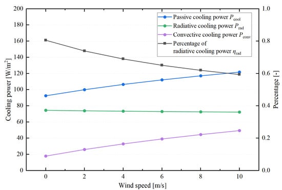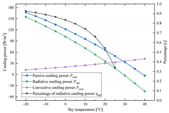 where hrad and hcond are the equivalent radiative heat transfer coefficient and the equivalent conductive heat transfer coefficient of the proposed module. The percentage of the radiative cooling power of the module is defined as follows: