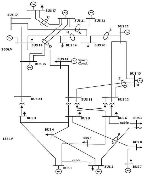 - Subcommittee, P.M. IEEE reliability test system. IEEE Trans. Power Appar. Syst. 1979, PAS-98, 2047–2054. [Google Scholar] [CrossRef]