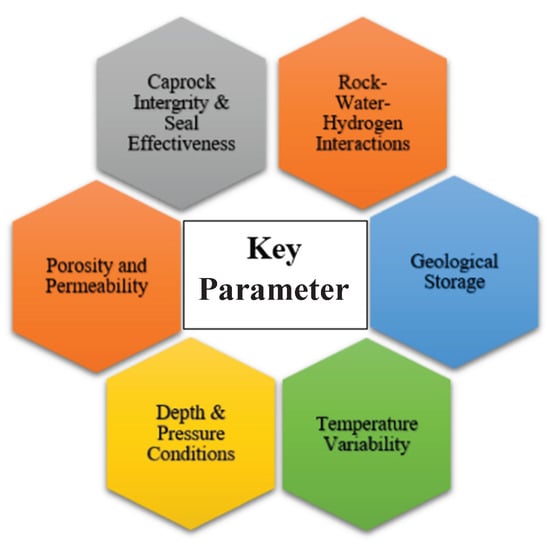 An impermeable caprock reinforces depleted oil and gas fields; aquifers on the sides and underneath them as well. The current hydrocarbon reserves show that caprock integrity is fully known. Consideration of elements like formation storage capacity, storage depth, and caprock formation thickness helps one choose a storage site [11,12]. Mostly by reversible trapping processes comprising structural/stratigraphic, capillary trapping, and solubility/dissolution in fluids, hydrogen is maintained in geological formations. UHS in depleted reservoirs must satisfy certain criteria if it is to operate consistently over a long period [4]. Hydrogen present in oil fields could react with leftover oil to produce methane, thereby decreasing the level of stored gas.