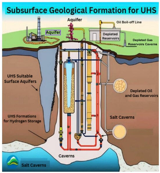 - Duartey, K.O.; Ampomah, W.; Rahnema, H.; Mehana, M. Underground Hydrogen Storage: Transforming Subsurface Science into Sustainable Energy Solutions. Energies 2025, 18, 748. [Google Scholar] [CrossRef]