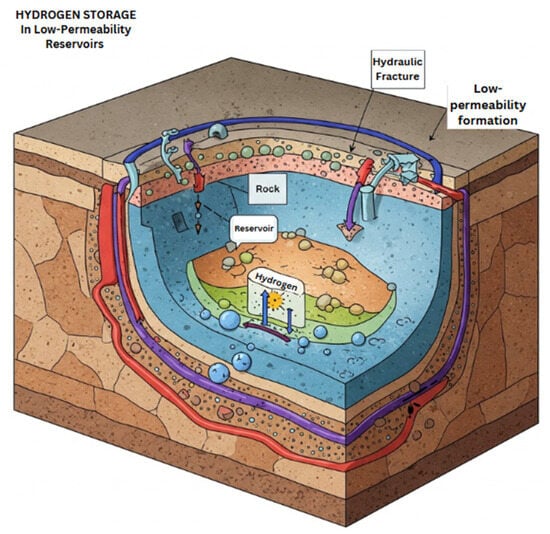 Especially for low-permeability formations, future research should focus on improving reservoir characterization techniques to gain a better knowledge of hydrogen migration and confinement behavior. Advanced sealing materials with more resistance to hydrogen diffusion will help to maintain storage system integrity and stop leakage, which is required for correct forecast of stress fluctuations and hazard mitigation including produced seismicity and caprock collapse are advances in geomechanical modeling and real-time monitoring systems. Identification of possible geochemical changes affecting reservoir stability depends on an analysis of hydrogen–mineral interactions.