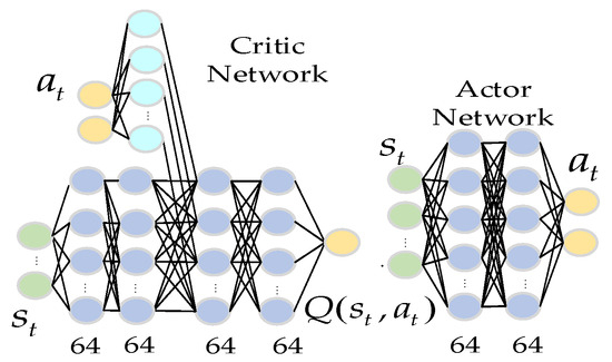 Figure 7, adopt distinct yet complementary feedforward designs. The actor network of policy π comprises two hidden layers, while the critic network of value function Q features a deeper structure with four hidden layers. Each layer contains 64 neurons, initialized with random parameters to encourage exploration in early training.