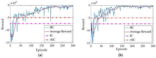 Figure 9. The instantaneous reward trajectories for the IC, AIC, and IIC are computed using the policy optimization metric defined in Equation (11), while the average reward values of IIC are depicted as a statistical aggregation over 20 training rounds.