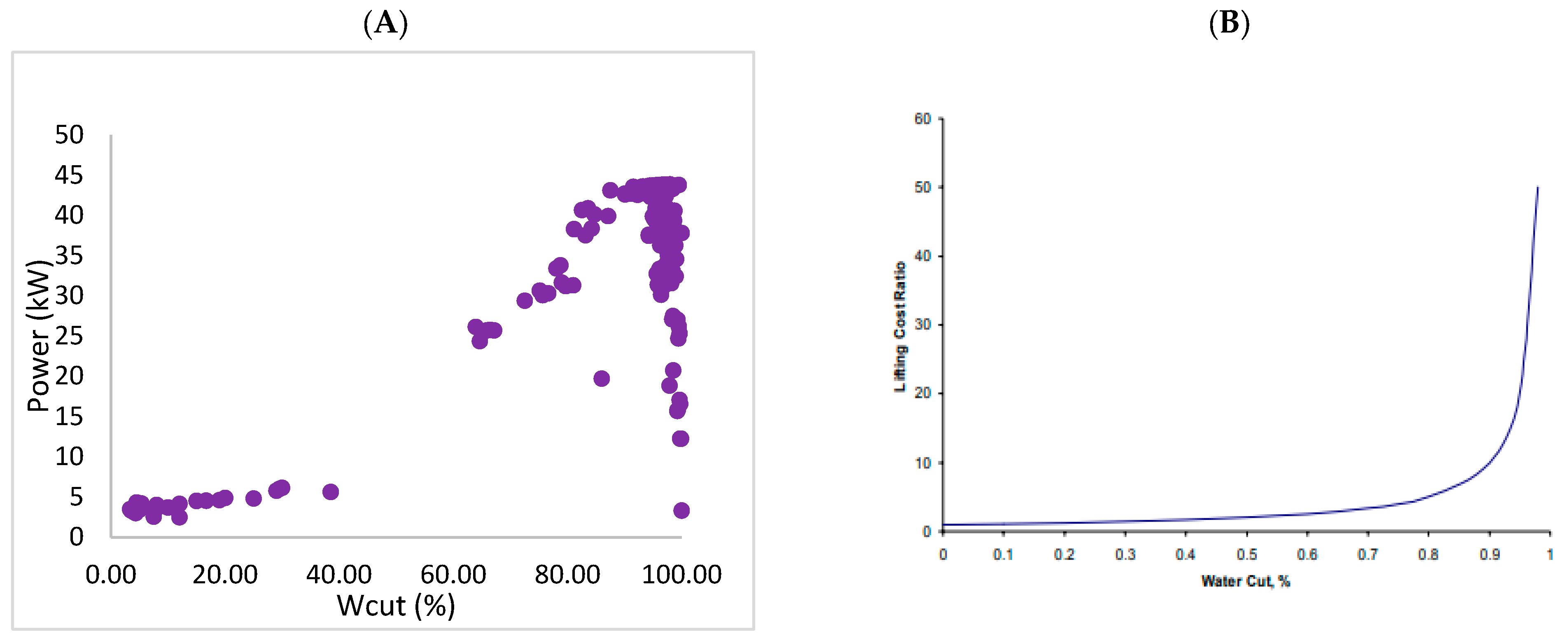 Figure 2A). Consequently, lifting costs rise exponentially with water cut, particularly when water production exceeds the 80% threshold (