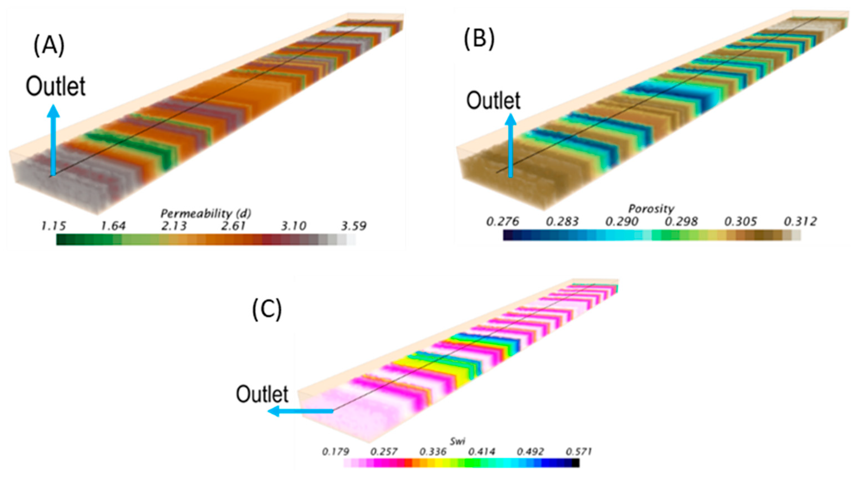 Figure 9. This means that heterogeneity in the reservoir was considered. The heterogeneous rock properties are from well logging measurements, and their ranges are presented in
