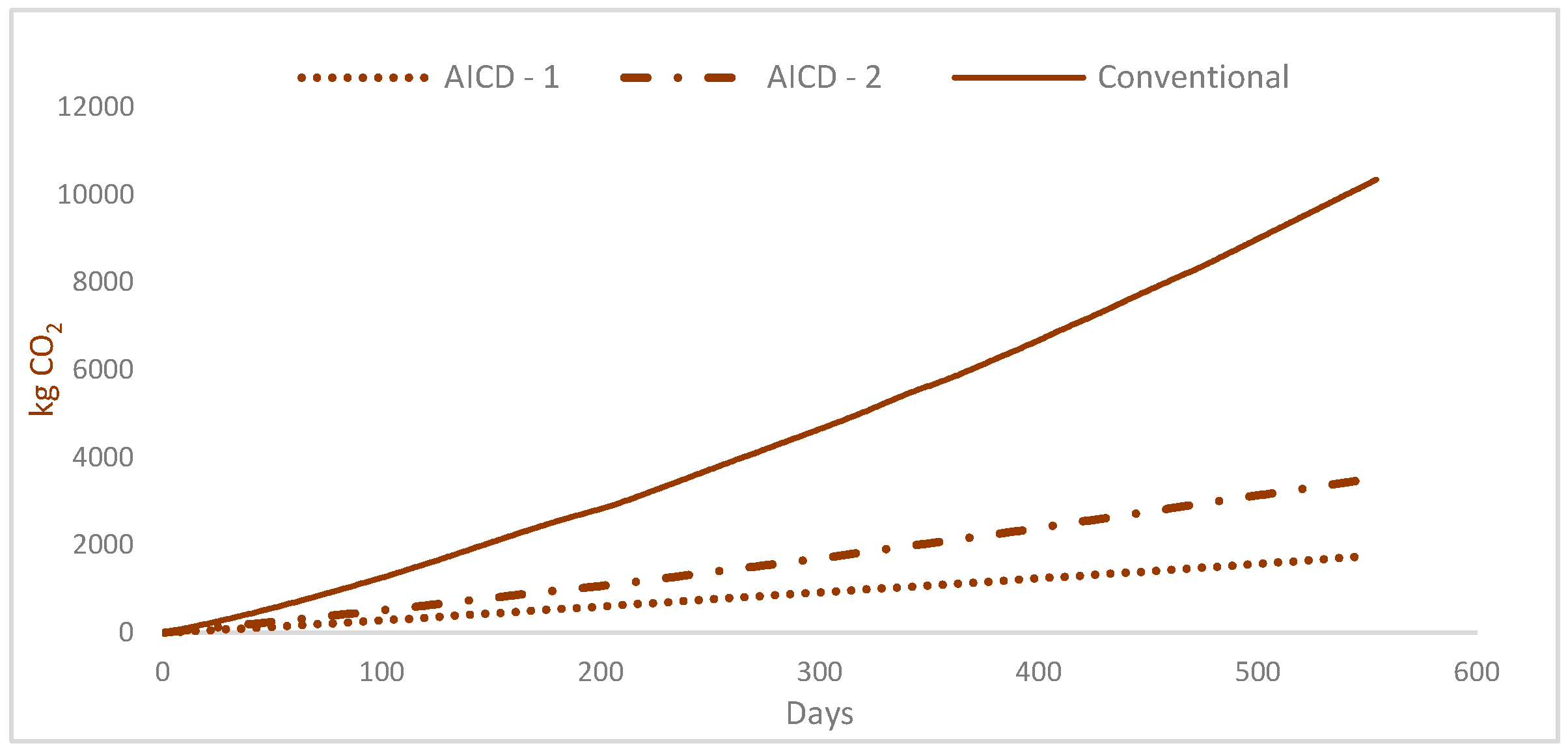 Proportional to energy consumption, the conventional well is expected to exponentially produce the most CO2 emissions. As the water cut increases over time, CO2 emissions will increase rapidly. Conversely, the wells with AICDs do not follow the same trend. As the water cut increments over time, the emissions will grow steadily, almost linearly, producing up to a five times smaller carbon footprint and aiding the environment.