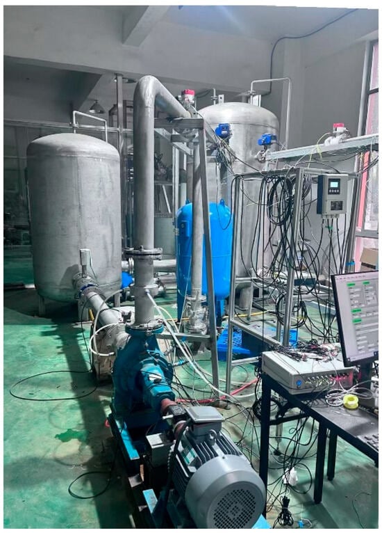 - The inlet valve was opened to allow water to gradually fill the pump body and the inlet and outlet pipelines. Simultaneously, the changes in the pressure sensor readings were checked to ensure that no air remained in the pipeline.