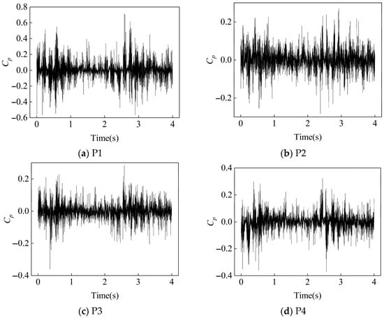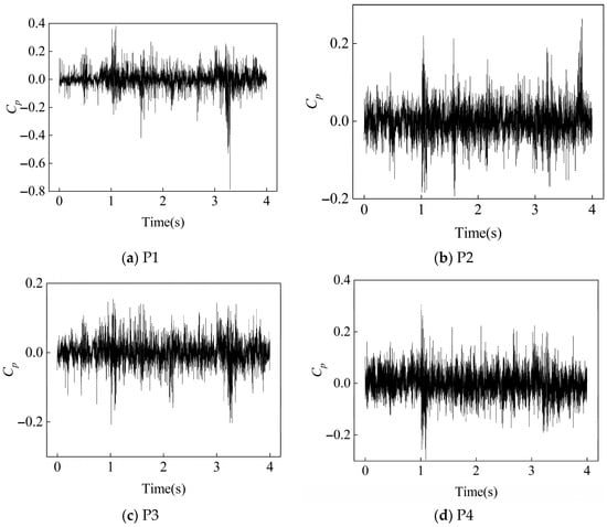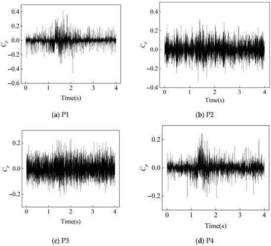 Based on the above concept, the pressure pulsation coefficient can be defined as the ratio of the standard deviation of the pulsation pressure to the dynamic pressure, where denotes the dynamic pressure.